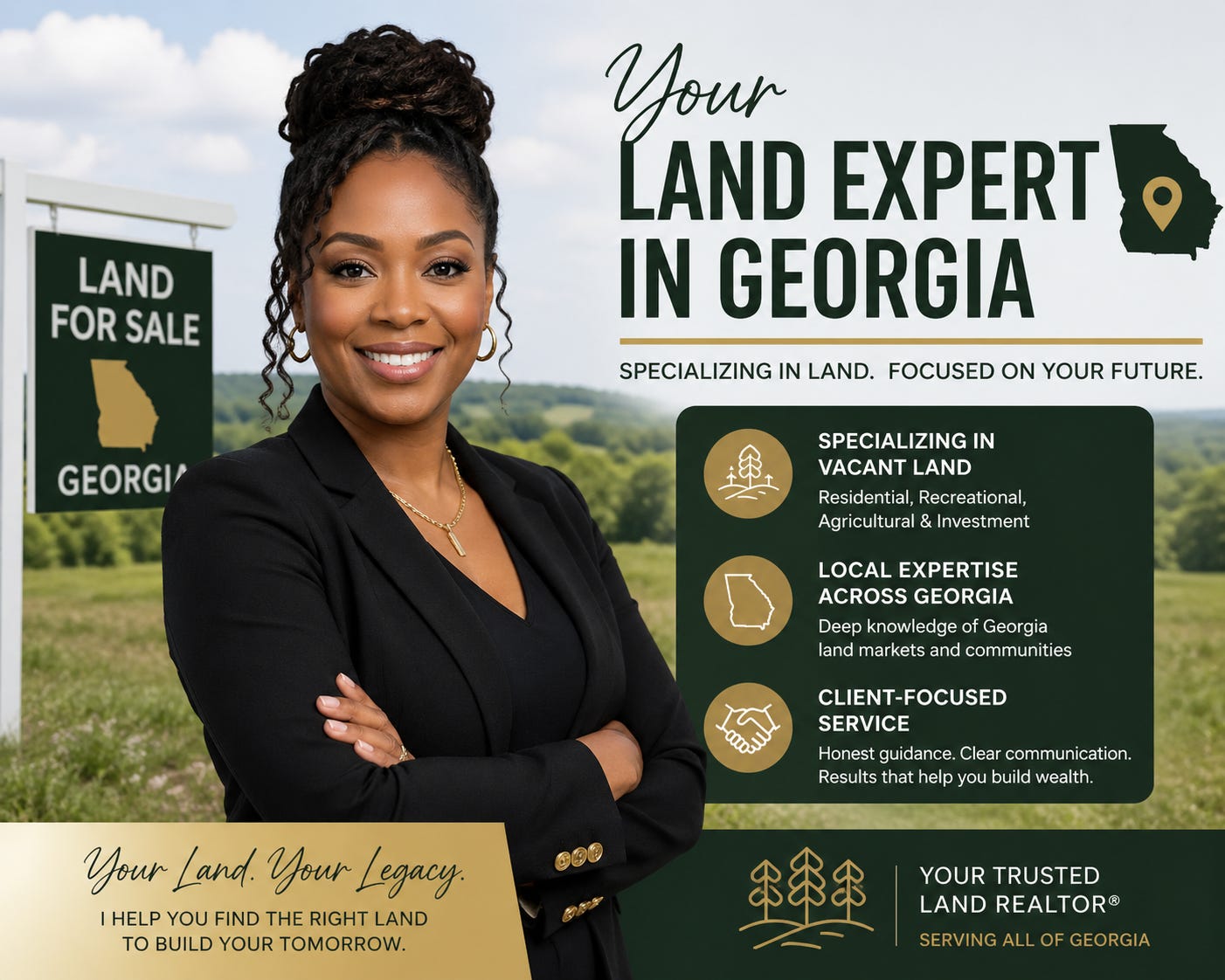 You don’t legally need one, but having a buyer’s agent who specializes in land is strongly recommended. Land transactions involve unique due diligence — zoning research, perc tests, title chains, survey reviews — that a residential-focused agent may not be equipped to handle. In Georgia, buyer’s agents are typically compensated by the seller, so representation often costs you nothing out of pocket.